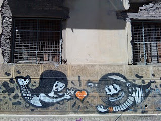 Οι τοίχοι της πόλης είναι ζωντανοί για Χ λόγους, από τους οποίους οι σπουδαιότεροι είναι, κατά τη γνώμη μου, οι εξής δύο: 1) οι τοίχοι είναι η πλουσιότερη συλλογή του κόσμου έργων ατάλαντων. Και ατάλαντοι είμαστε οι περισσότεροι. 2) οι τοίχοι μηρυκάζουν τα ίδια και τα ίδια και τα ίδια. Όπως γίνεται και στη ζωή.